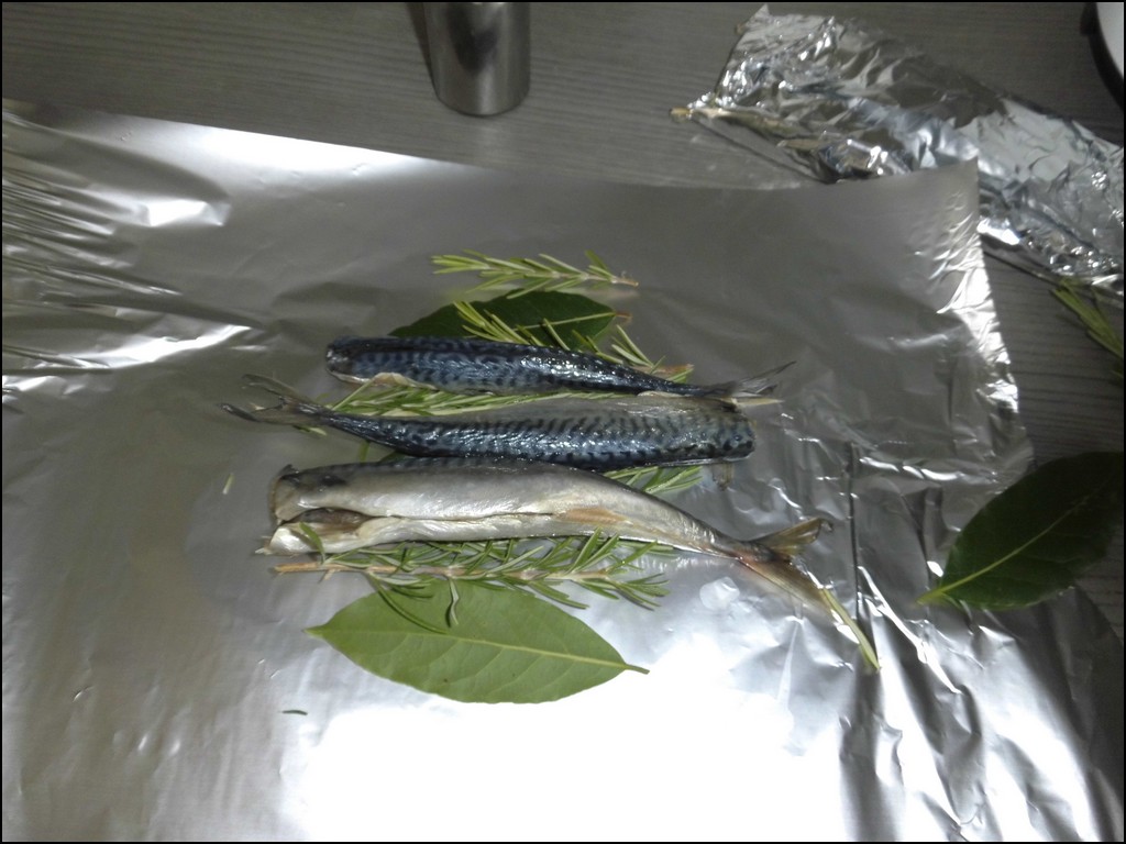 posez les petits maquereaux sur une feuille d'alu ou aura été déposés les branche aromatique ainsi que des rondelles d'oignons.vous pouvez aussi ajouter quelques rondelles de tomates.mettre un peu de beurre ou d'huile dans chaque papillotte.fermer .déposez les papillottes dans une poèle et faire cuire 10 à 15 mn suivant la grosseur des maquereaux.(ou au barbecue)